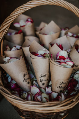 Arche fleurie, bouquet de la mariée, boutonnières, couronnes, décoration de table, d’église ou de salle… Et le petit plus : la pluie de pétales de roses (selon la saison).